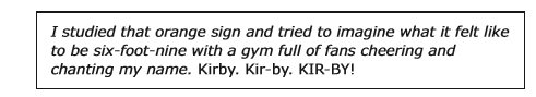 - Q9Read this excerpt from the story. Kirby’s thoughts in this excerpt reveal that he —understands the effort that is required to play professional basketballwishes he had the talent to be recognized for his playingis reliving a moment from a previous basketball game he playedneeds encouragement from others to be successful60s7.6.B: Reading - Comprehension of Literary Text - Fiction