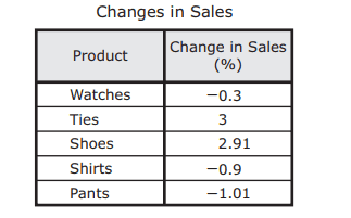 A store manager analyzed the change in sales of various products from last month to this month. The percent increases and decreases in sales are shown in the table. These values will be ordered from greatest to least. Which list of the products matches this order?