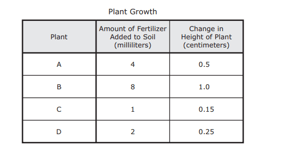 The amount of fertilizer added is an independent quantity, and the change in the height of The plant is a dependent quantity.
