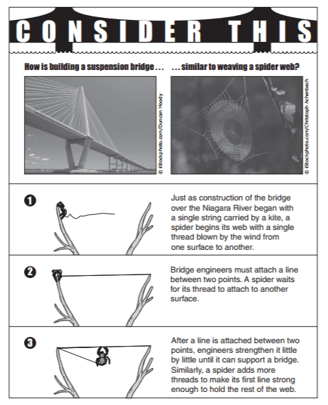 - Q6According to the information in “Consider This,” when does a spider construct most of its web?After reinforcing the first threadWhen the first thread is blown by the windBefore attaching a thread to a surfaceWhen the wind stops blowing the threads60s7.12.A: Reading - Comprehension of Informational Text - Procedural Texts