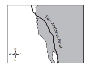 The two elements are in the same period, with Element R the first element in the period and Element Q the last element.The two elements are side by side in the same period, with Element Q to the left of Element RThe two elements are in the same group, with Element R just above Element Q.The two elements are in the same group, with Element Q at the top of the group and Element R at the bottom.60sC.5(A) - Q7The San Andreas fault is a transform fault. The map below shows a student’s approximation of where the fault line crosses through the United States. Students were asked to make maps predicting which way land would most likely move over thousands of years. Which map best predicts the likely movement of land along the fault line over thousands of years?#texas/6aa7ae5c-5775-40a6-9f3c-597e8e2975db/D.png#texas/6aa7ae5c-5775-40a6-9f3c-597e8e2975db/B.png#texas/6aa7ae5c-5775-40a6-9f3c-597e8e2975db/A.png#texas/6aa7ae5c-5775-40a6-9f3c-597e8e2975db/C.png60s7.KS(10)
