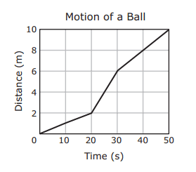 - Q10The graph below shows the motion of a ball rolling on a straight track. What was the ball’s average speed during the time represented in the graph?0.2 m/s5.0 m/s0.5 m/s10.0 m/s60s7.7(A)