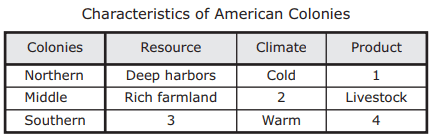- Q5Which characteristic is correctly matched with a number in the table?1: Indigo4: Ships3: Rocky soil2: Moderate60s8.11.A: Social Studies - Geography
