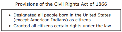 - Q1What is the historical significance of this act?It represented a shift in federal power after the impeachment of President Johnson.It represented the failure of northern abolitionists to influence Reconstruction policies.It was the first time Congress passed a law that protected racial minorities.It was the first time Congress voted to overrule a presidential veto.60s8.9.A: Social Studies - History