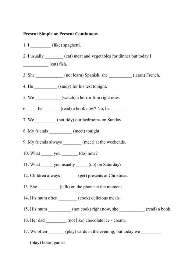 Present simple and present continuous online activity for Pre - intermediate. You can do the exercises online or download the worksheet as pdf.