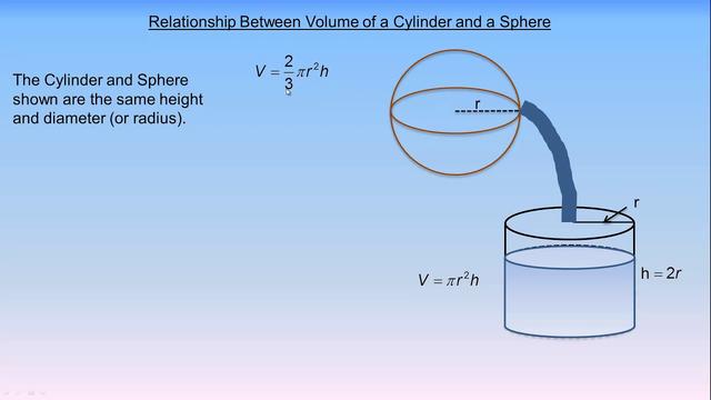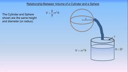 This tutorial shows how to develop the volume formula for a sphere from that of a cylinder that are both the same height and diameter.